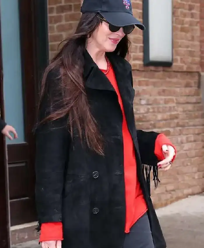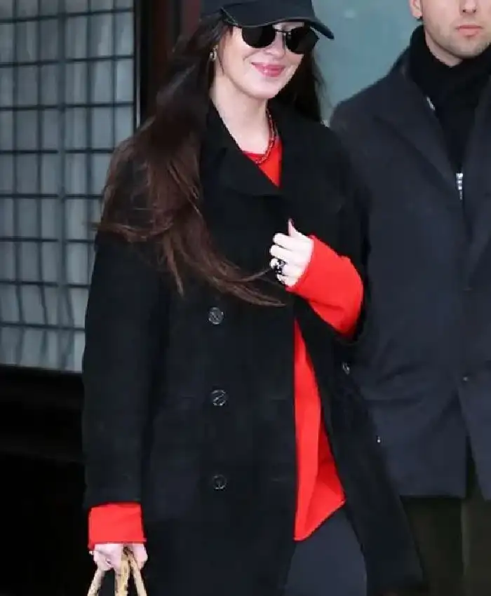 Dakota Johnson New York City 2026 Black Suede Leather Coat For Women