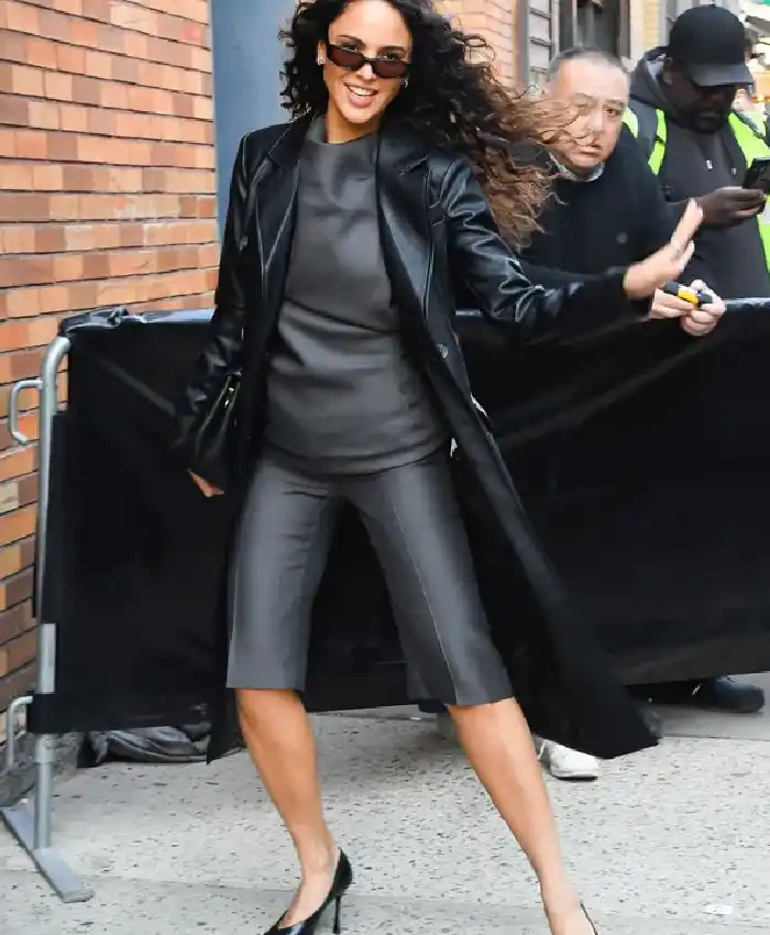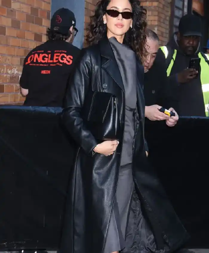 Eiza Gonzalez New York City 2026 Black Leather Long Coat For Women Shop Now
