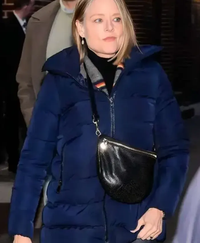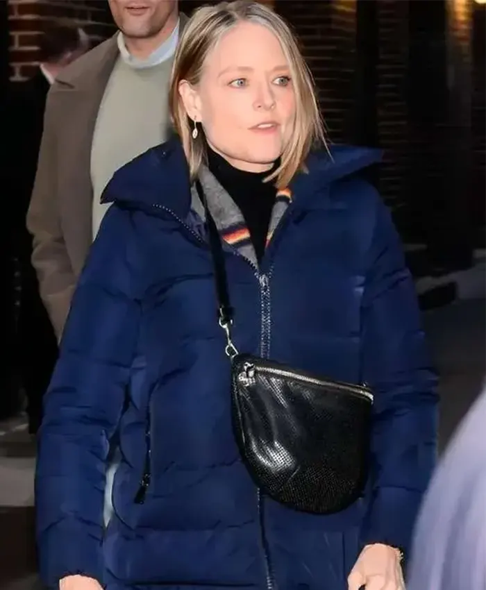 Jodie Foster 2026 Liz Danvers Navy Blue Parachute Fabric Puffer Jacket For Womens