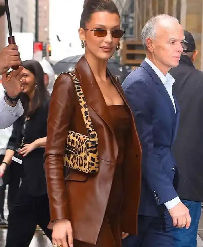 Bella Hadid Variety Women of Power Event Brown Leather Blazer For Women