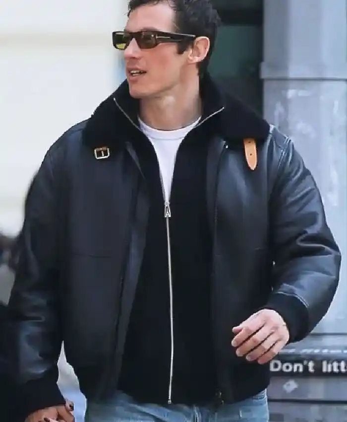 New York City 2026 Callum Turner Black Shearling Leather Jacket