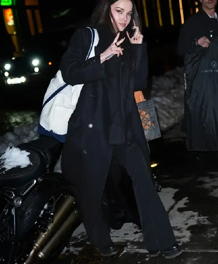 New York City 2026 Dove Cameron Black Wool Trench Coat For Women