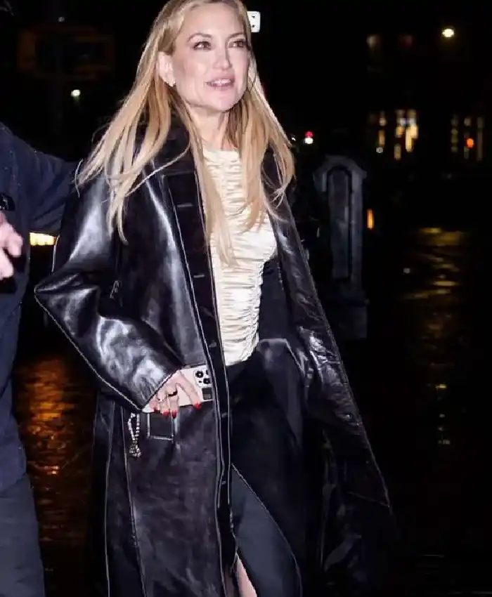 Kate Hudson New York City 2026 Black Leather Trench Coat For Women