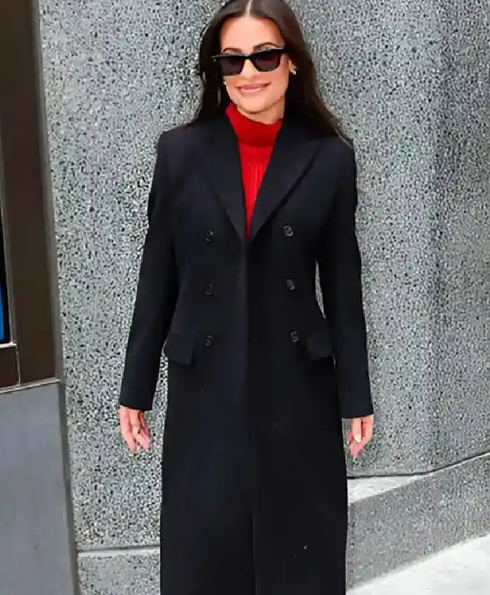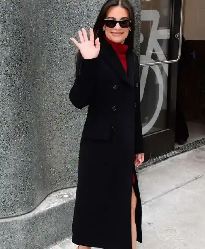 New York City 2026 Lea Michele Black Wool Long Coat For Women