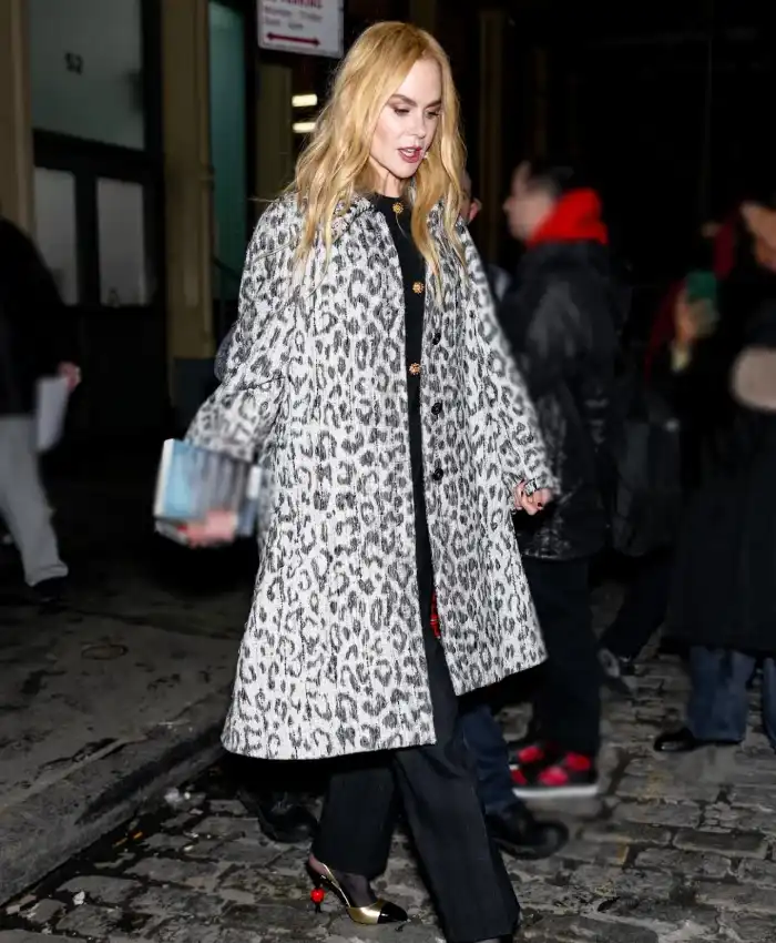 New York City 2026 Nicole Kidman Leopard Printed Long Coat For Women