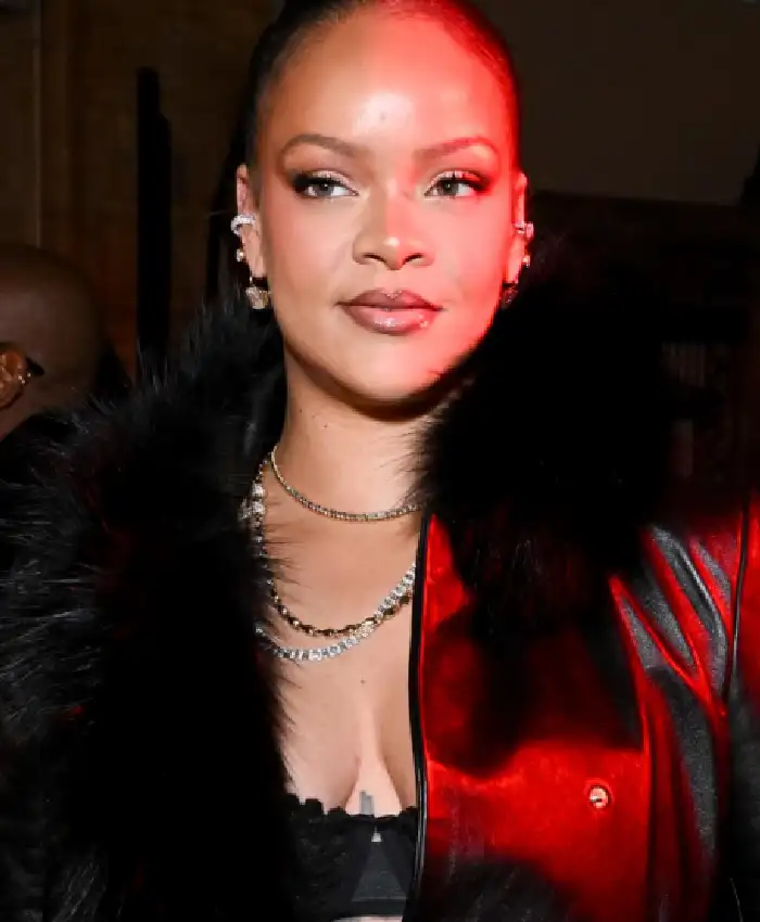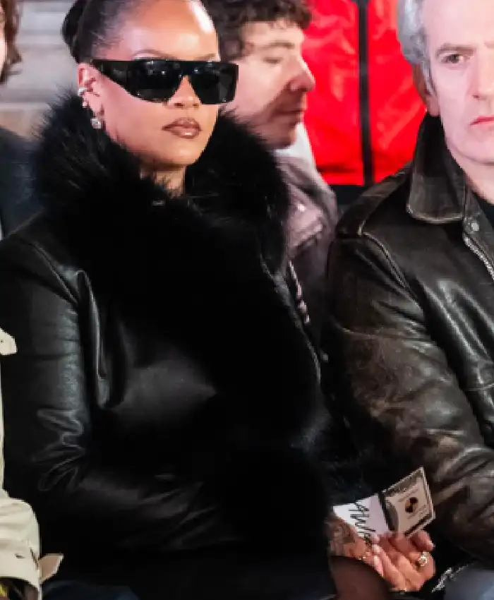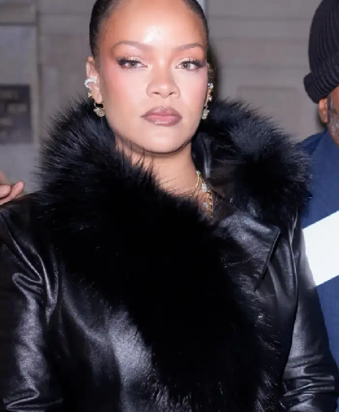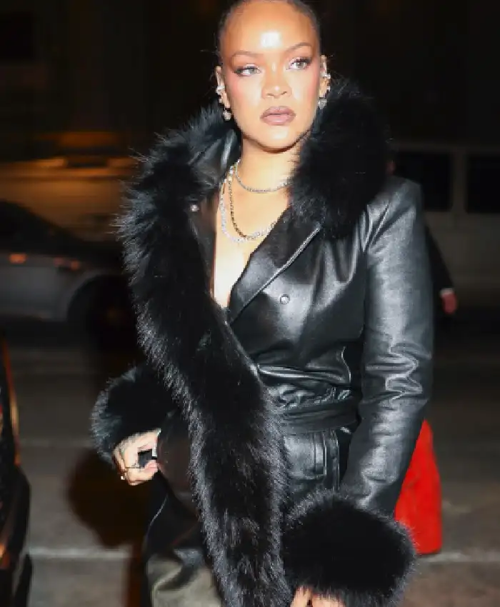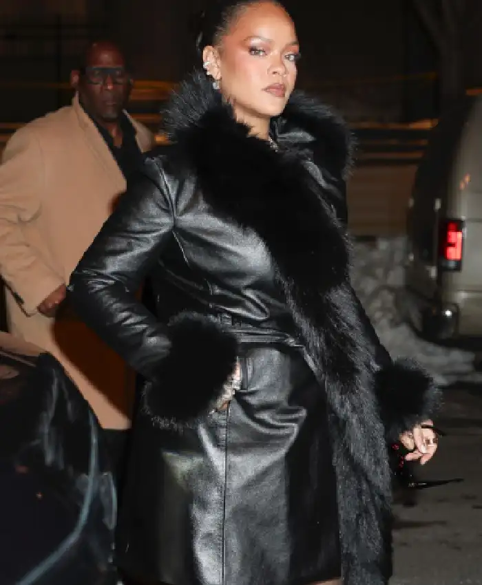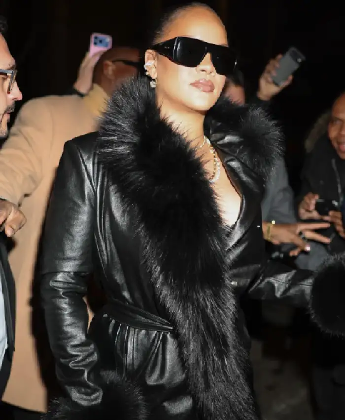 Rihanna New York City 2026 Black Leather Trench Coat For Women