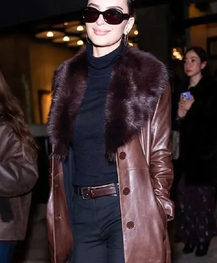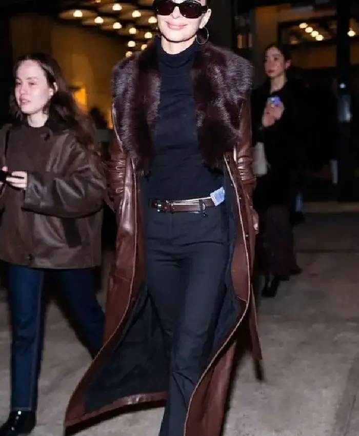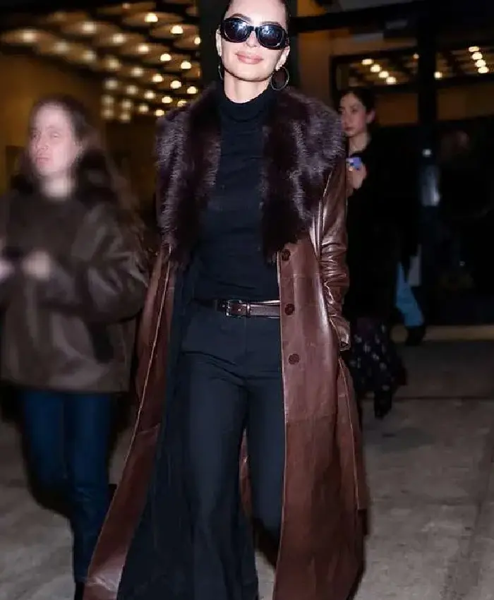 Emily Ratajkowski NYFW 2026 Brown Leather Trench Coat For Women