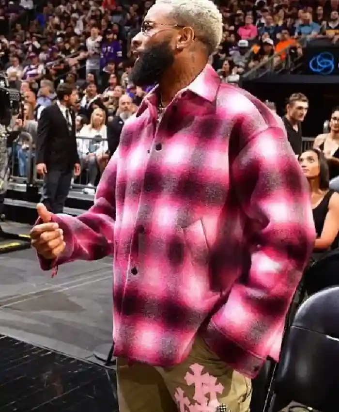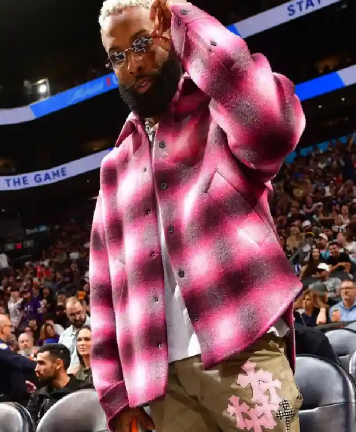 Odell Beckham Jr. Denver Nuggets Vs Phoenix Suns Ombré Buffalo Pink Wool Check Pattern Jacket On Sale For Men