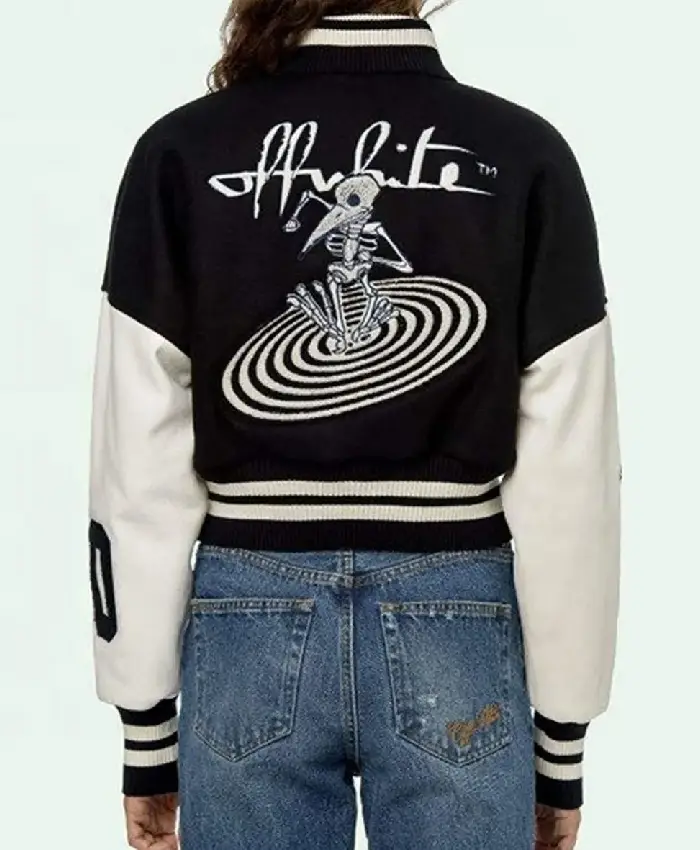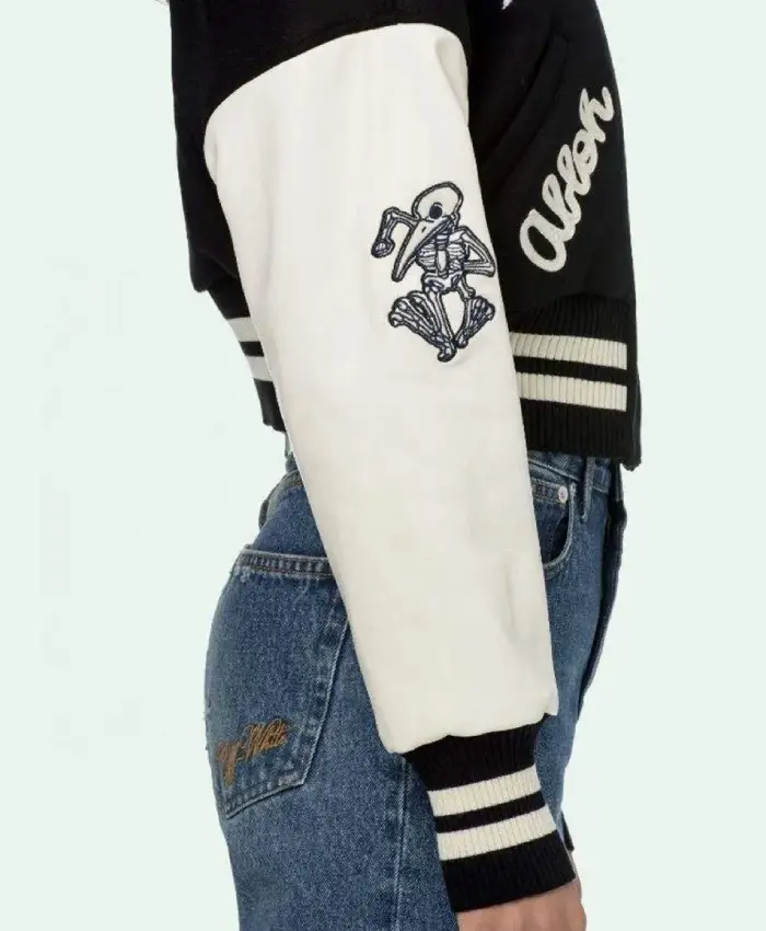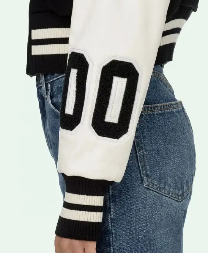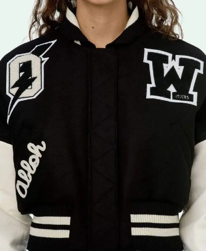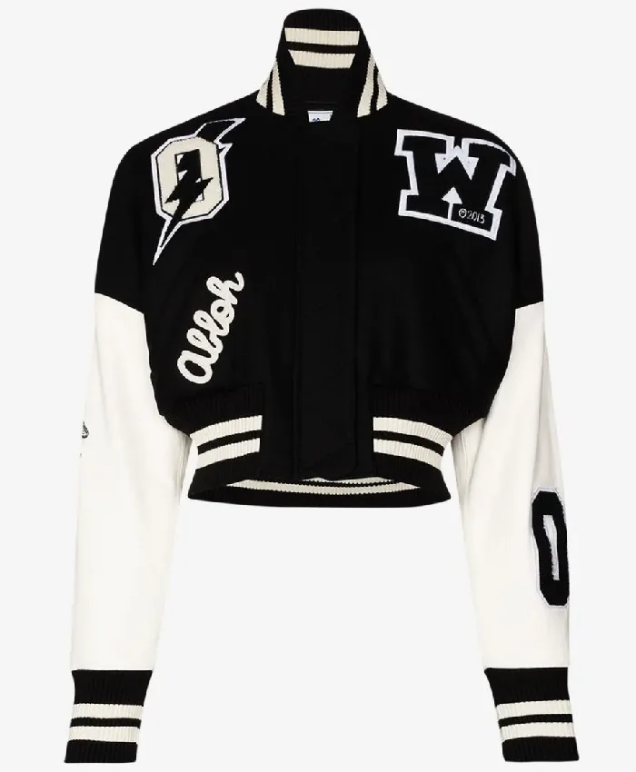 Off White Cropped Black and White Varsity Jacket