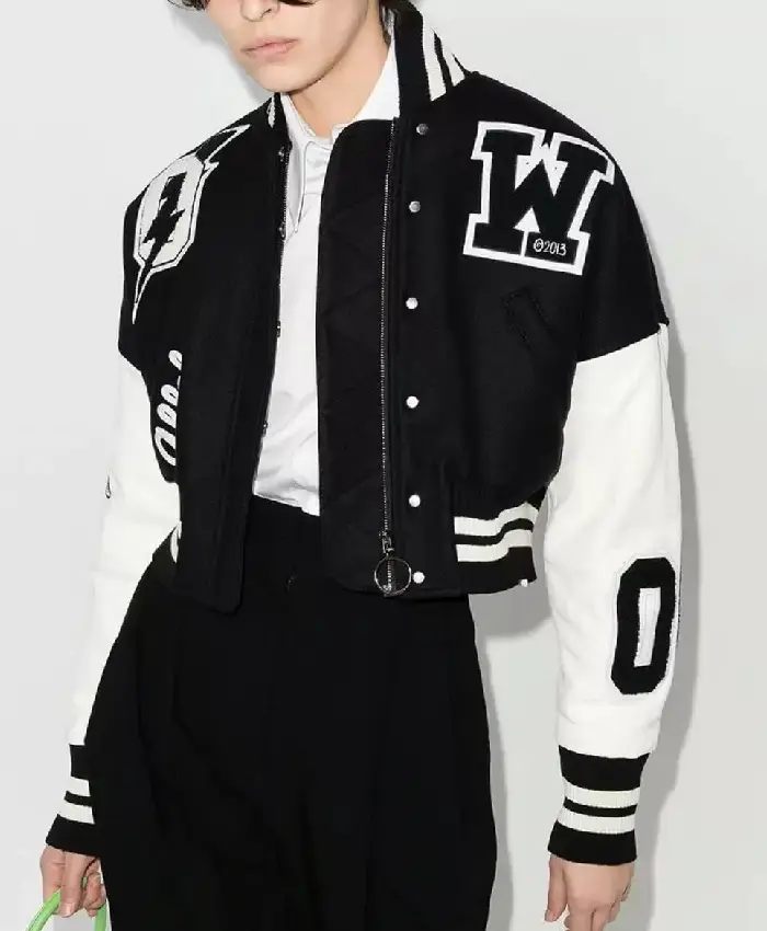 Off White Black and White Cropped Bomber Wool Varsity Jacket For Men and Women