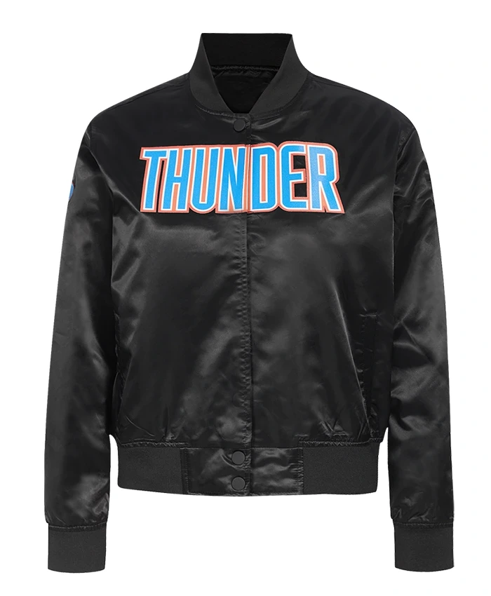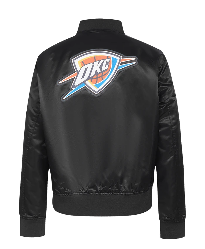 Shop Oklahoma City Thunder Black Satin Bomber Jacket for Men’s and Women’s