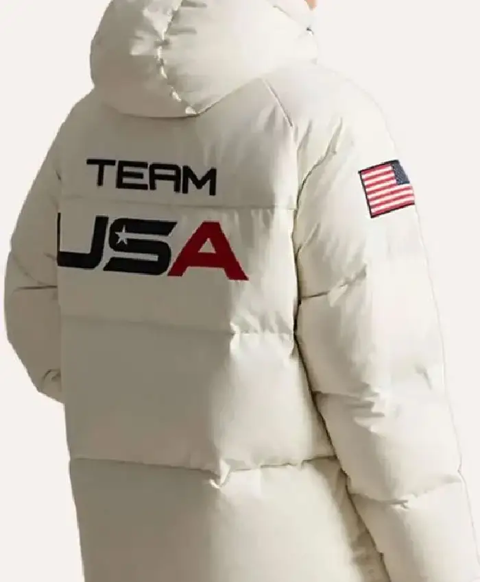 Team USA Winter Olympics 2026 Flagbearer White Puffer Jacket For Men and Women
