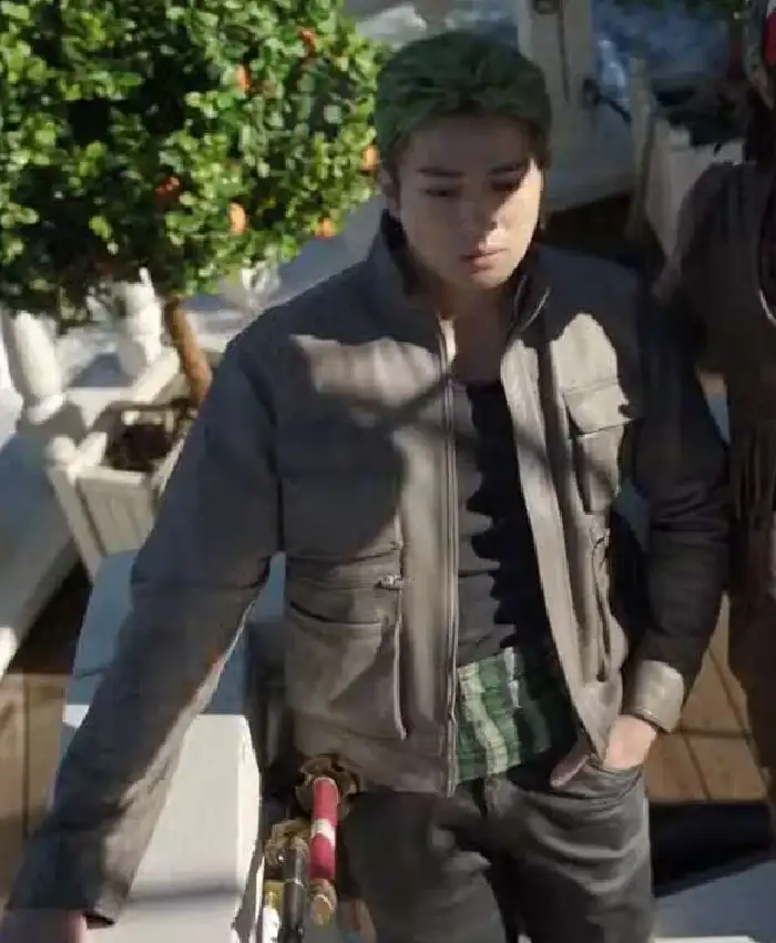 Mackenyu One Piece 2026 Roronoa Zoro Grey Leather Jacket For Men