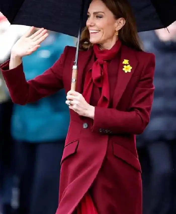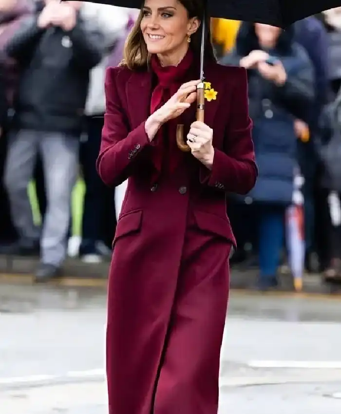 Kate Middleton Oriel Davies Gallery Maroon Wool Trench Coat For Women