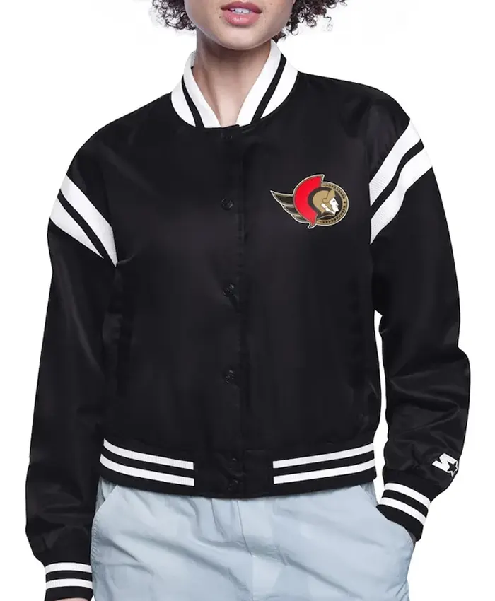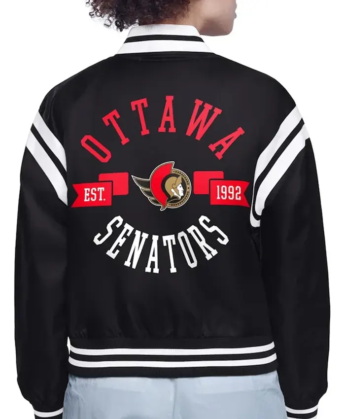 Ottawa Senators Printed Black Varsity Satin Jacket For Men and Women