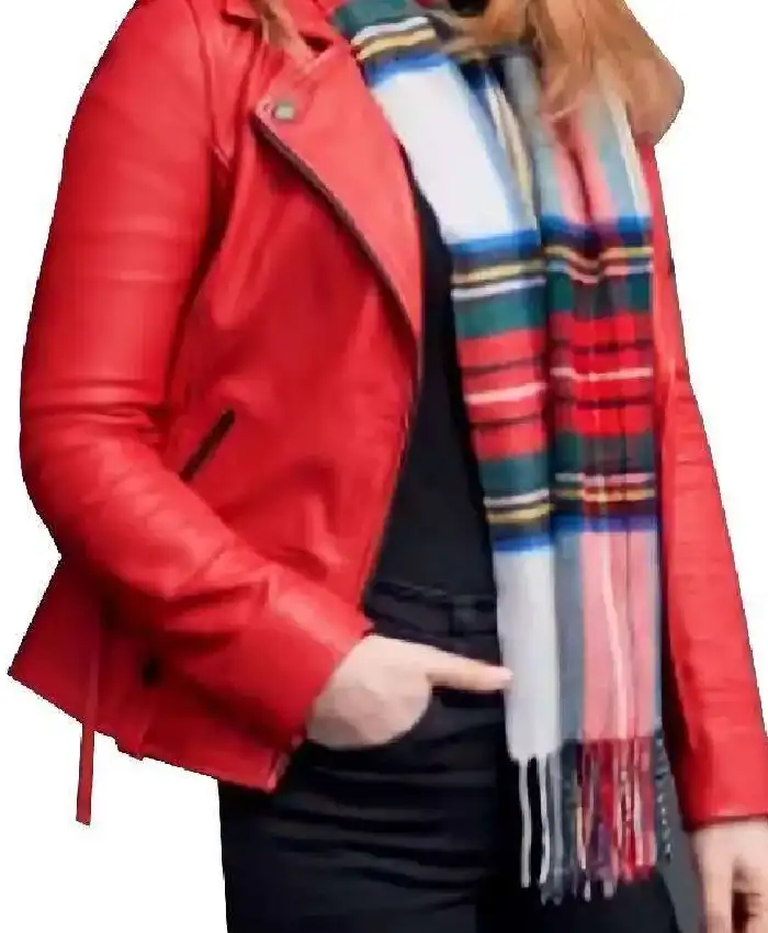 Alex Paxton-Beesley Our Christmas Mural 2023 Red Biker Style Leather Jacket For Women