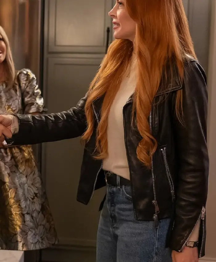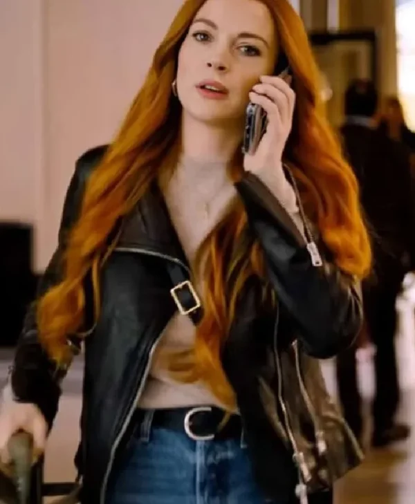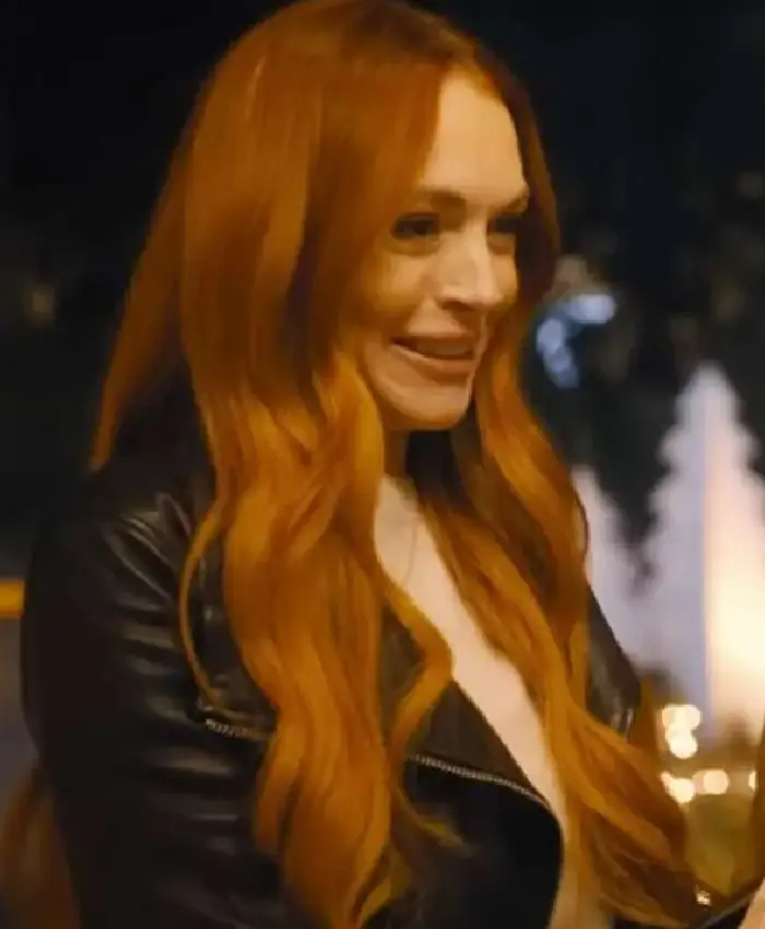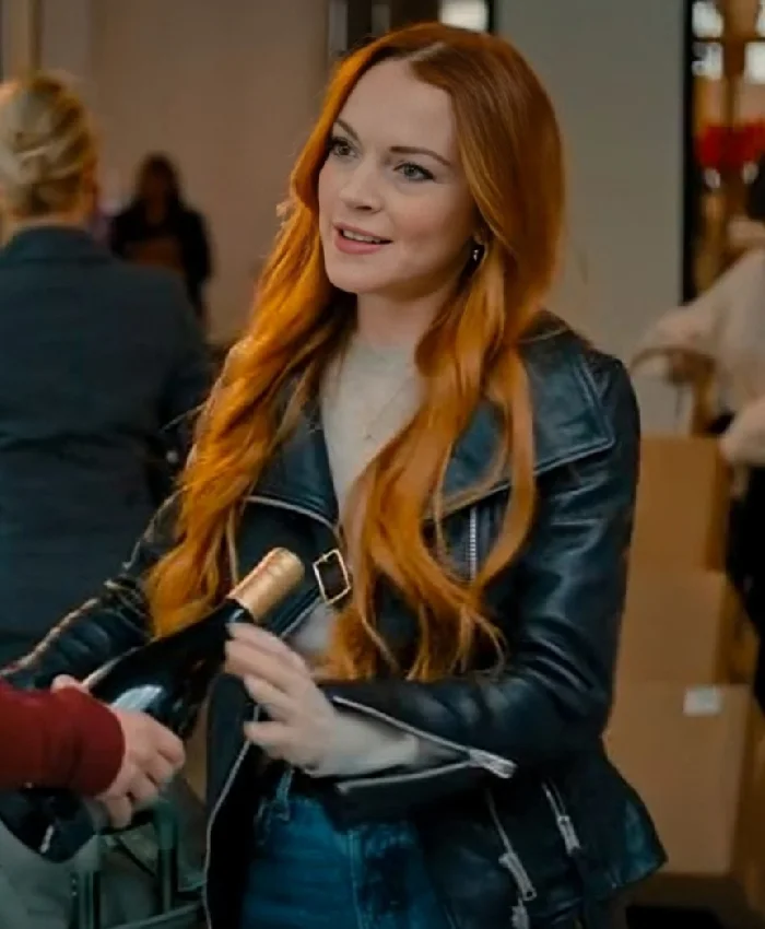 Lindsay Lohan Our Little Secret 2024 Black Biker Leather Jacket For Women