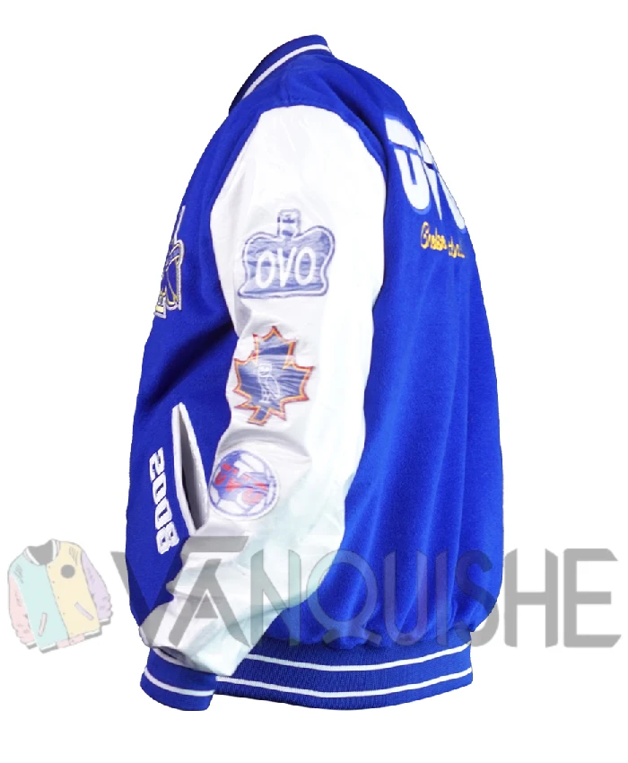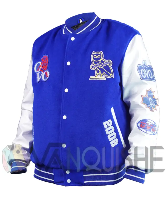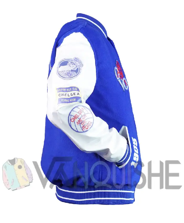 Chelsea X OVO FC Royal Blue and White Full Snap Wool Varsity Leather Jacket For Men and Women