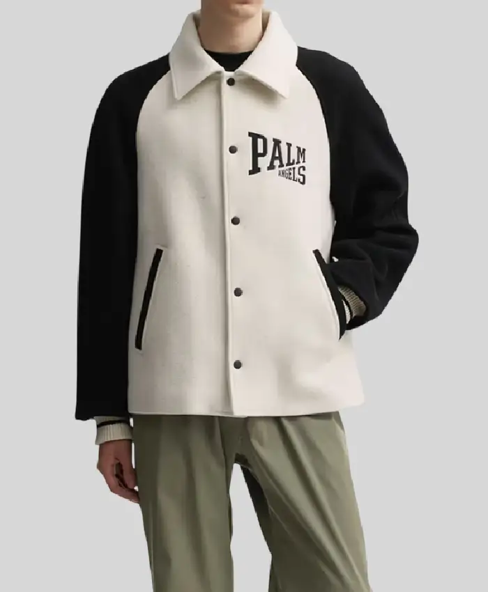 Palm Angels University Black and White Wool Varsity Jacket On Sale For Men and Women