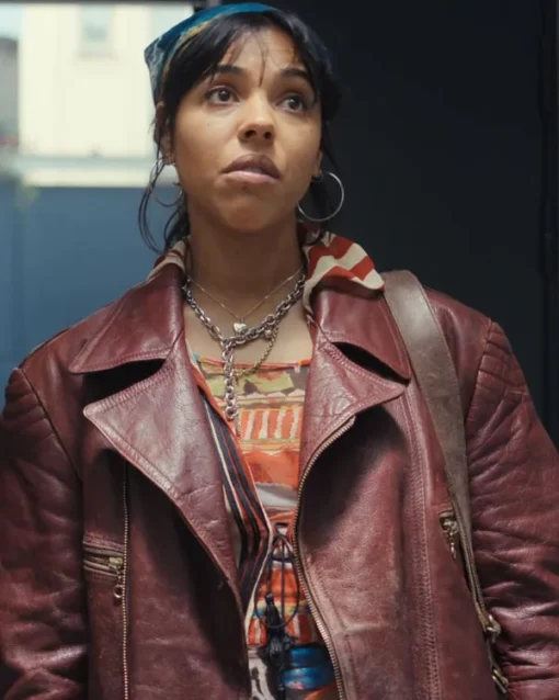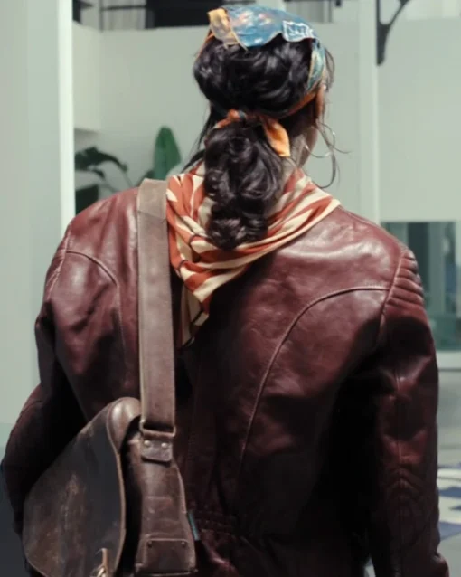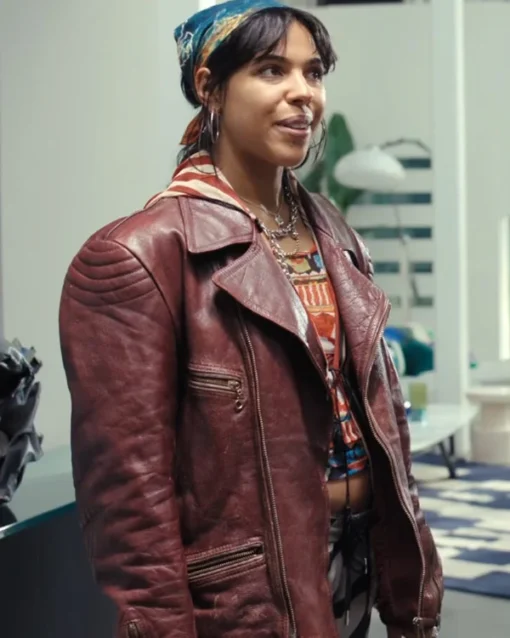 Paloma Castel TV Series La Maison 2024 Zita Hanrot Maroon Zipper Style Leather Jacket