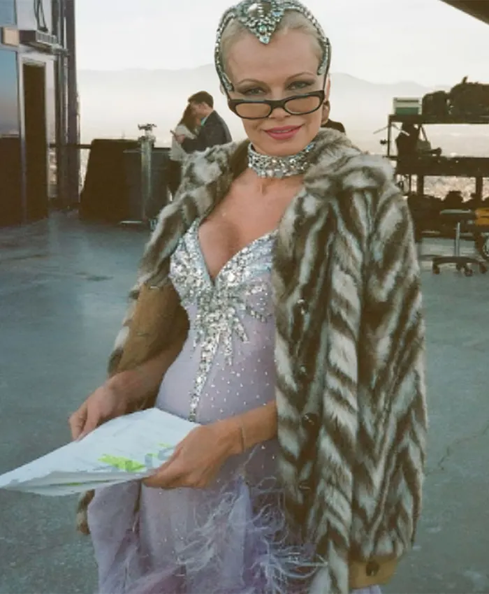Shelly Movie The Last Showgirl 2024 Pamela Anderson PU Fur Blazer