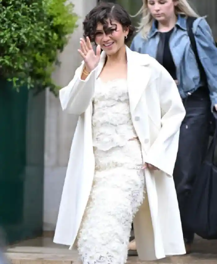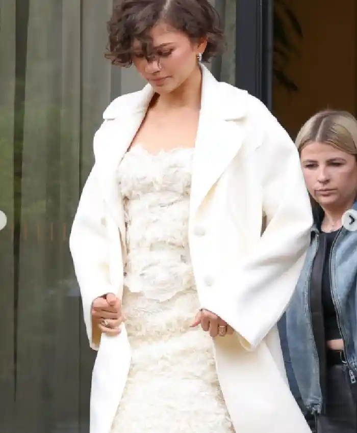 Zendaya Paris and France Press Tour Of The Drama 2026 White Wool Trench Coat On Sale For Women