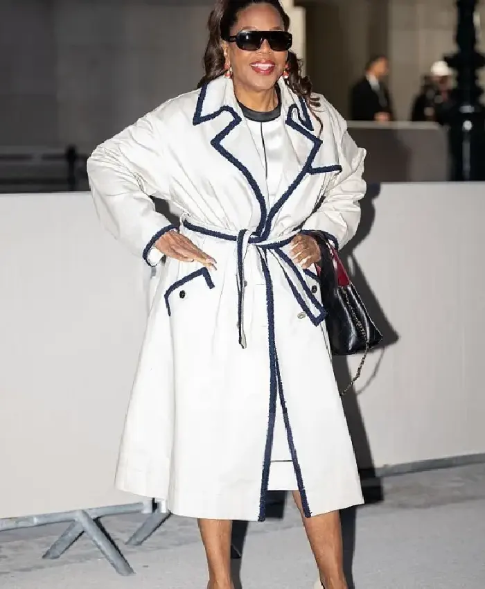 Oprah Winfrey Paris Fashion Week 2026 White Trim Trench Coat On Sale For Women