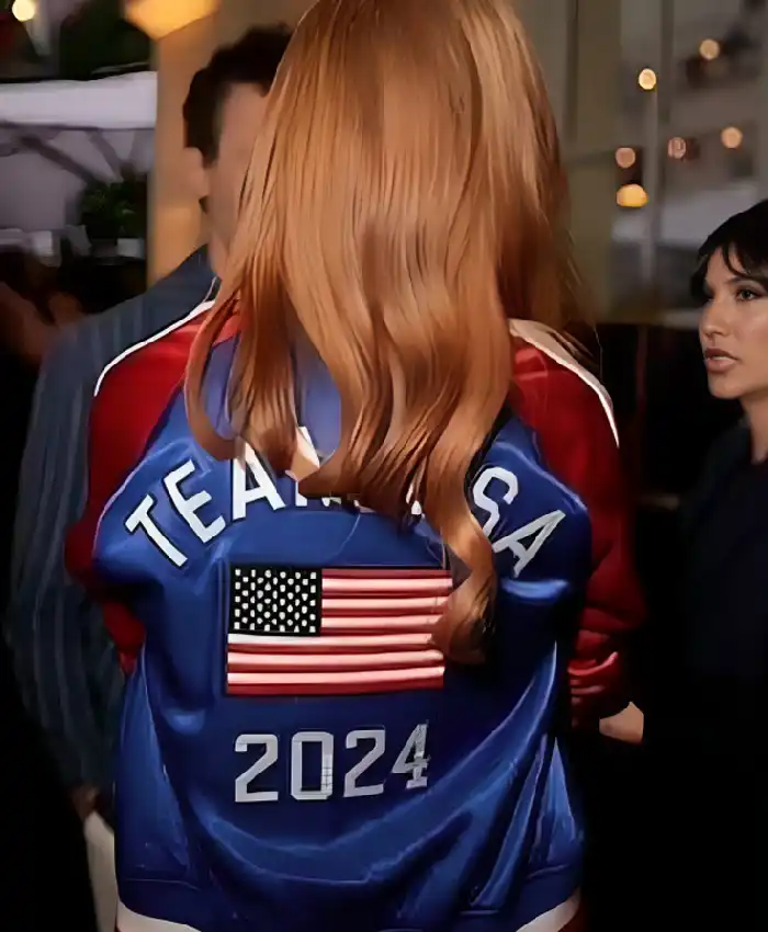 Jessica Chastain Paris Olympics Team USA Satin Varsity Jacket For Women
