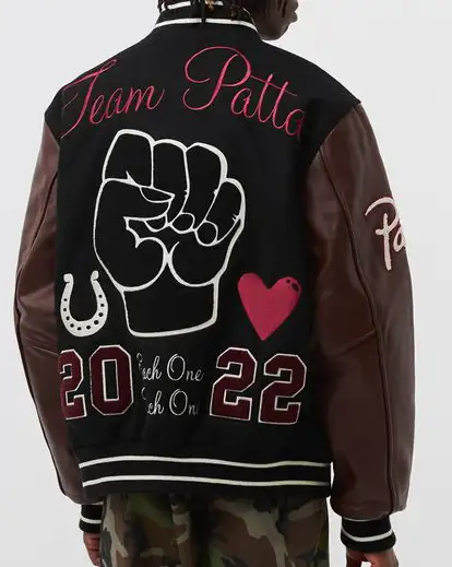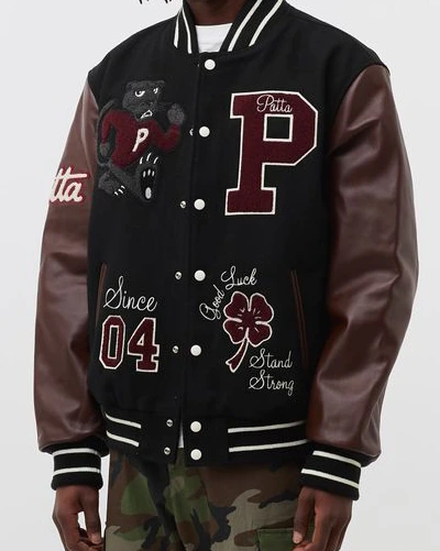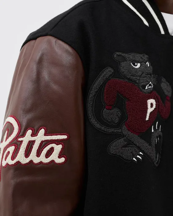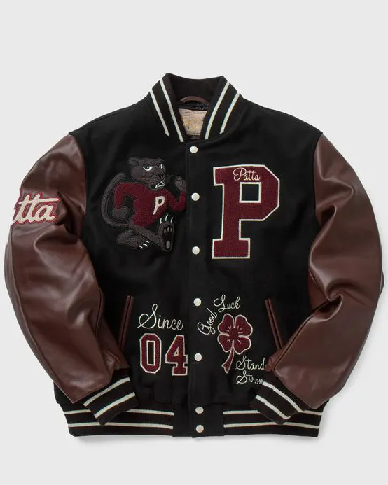 Patta Lucky Charm Varsity Jacket is A Streetwear Staple that Embody the spirit of rebellion with its dark hues combination. This iconic piece is a must-have for streetwear enthusiasts and those who dare to be different.