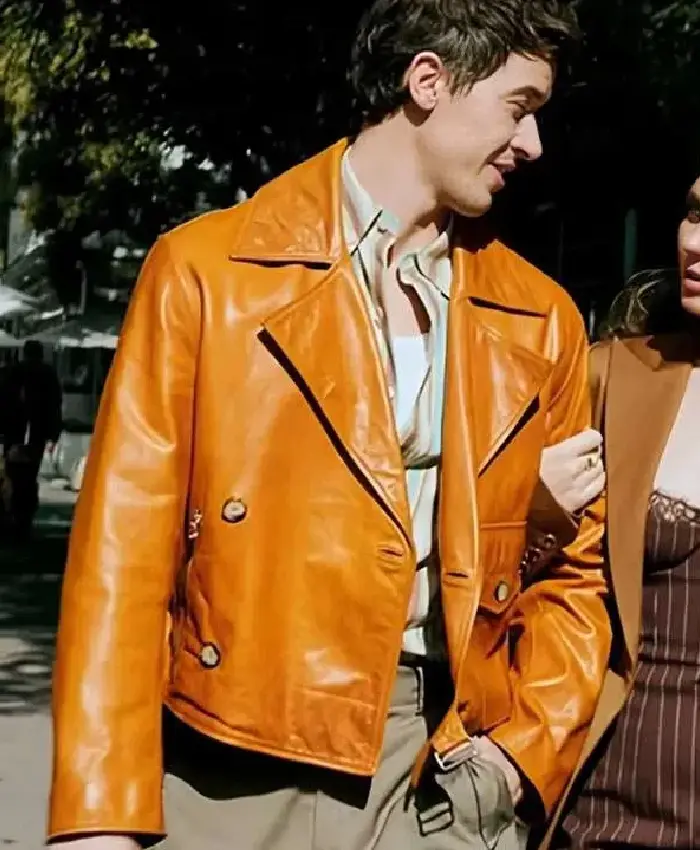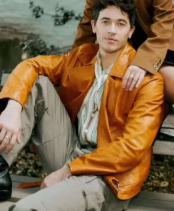 Tom Blyth People We Meet on Vacation 2026 Alex Tan Brown Leather Jacket For Men