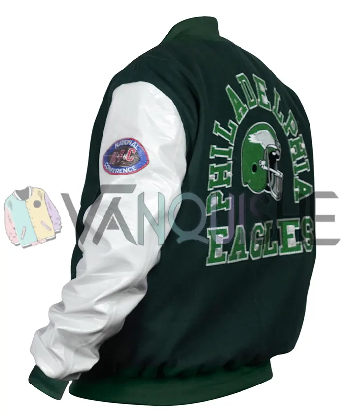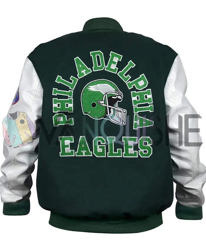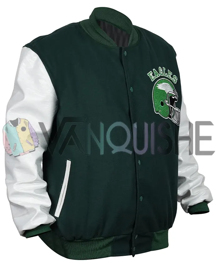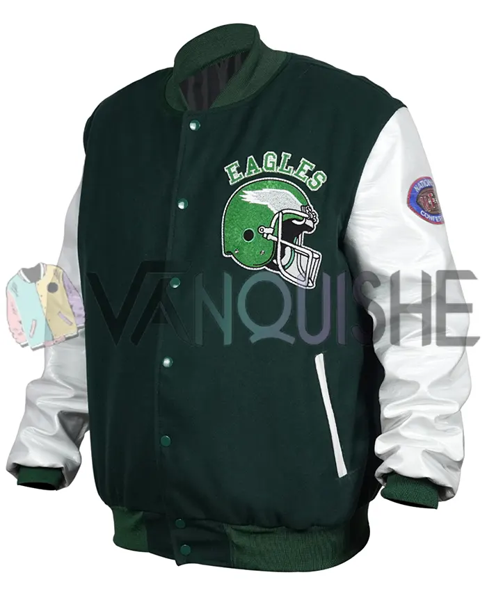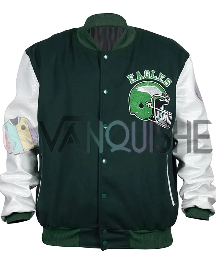 Philadelphia Eagles fans, are you ready to own the fashion game? Vanquishe is introducing a Philadelphia Eagles 80’s Green Varsity Jacket specially for the fans and those who want a retro, cool style. The Eagles’ green satin jacket is an embodiment of vintage energy and bold and retro charm. Carry an attire like this that is designed to rule; keeping the vintage varsity vibe, this jacket is as cool as your personality is!