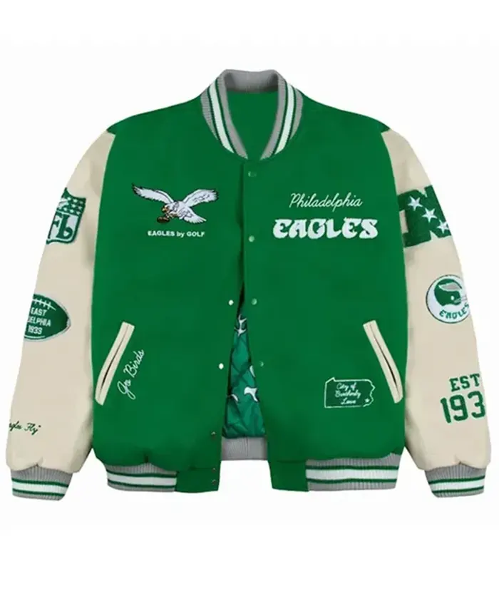Philadelphia Eagles Throwback NFL Philadelphia Eagles Green & Black Varsity Jacket For Mens & Womens