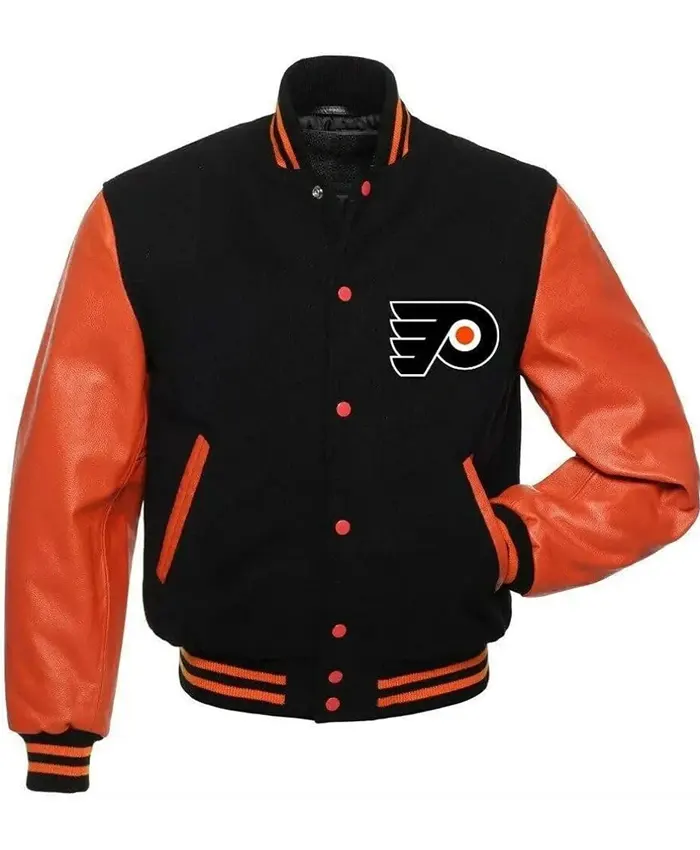 Philadelphia Flyers Black And Orange Varsity Full Snap Jacket For Sale