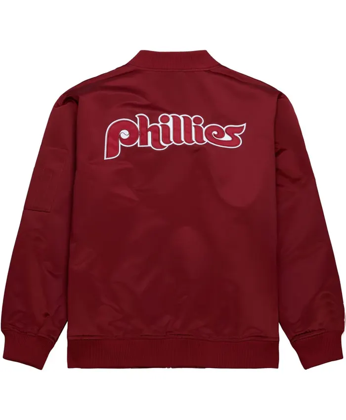Baseball Team Philadelphia Phillies Full-Zipper Satin Burgundy Bomber Jacket