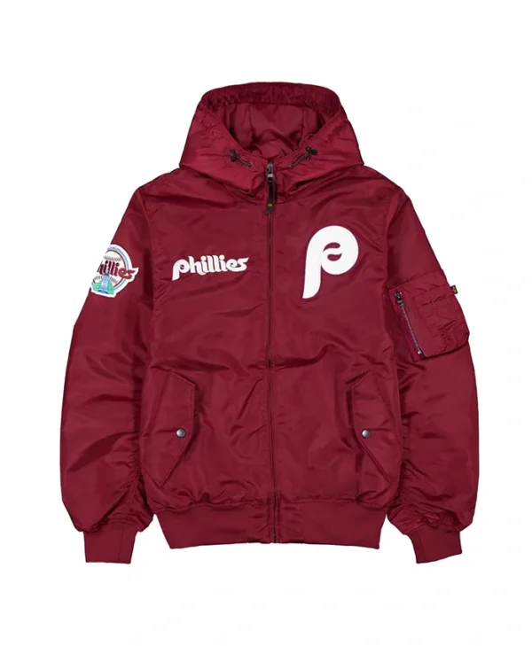Buy Philadelphia Phillies Historic L-2B Red Hooded Bomber Jacket For Sale