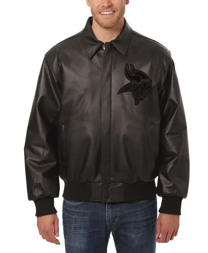 Philip Minnesota Vikings Black Leather Bomber Jacket