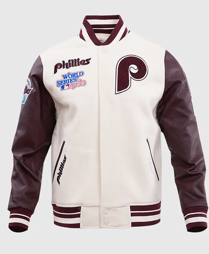 Shop Philadelphia Phillies Letterman Wool And Leather Sleeves Varsity Jacket For Sale