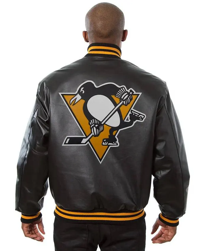 Pittsburgh Penguins Letterman Black Leather Jacket