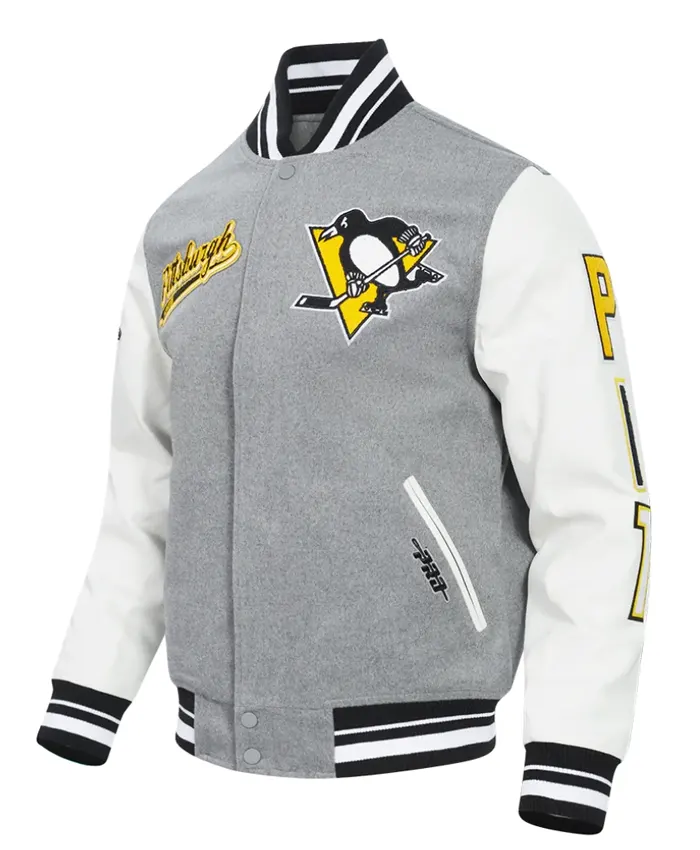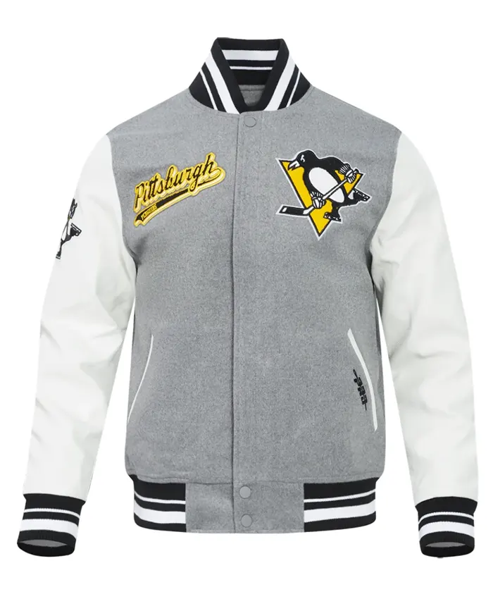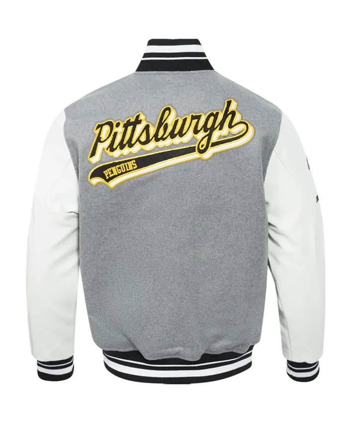 Pittsburgh Penguins Grey and White Wool and Leather Jacket For Men and Women