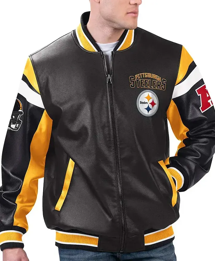 Cool, bold and confident—the Pittsburgh Steelers black varsity leather jacket isn’t an ordinary staple but a piece that reflects the team’s loyalty and high spirit. Are you ready to cheer up your team with this energy? Let this classic attire do the talking for you, as it is refined, admirable and classic enough. Made for those who value the commendable look of this varsity piece.