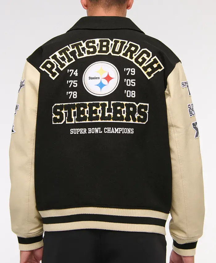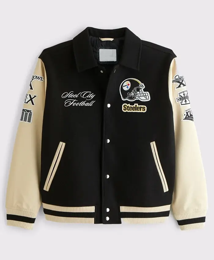 As the stadium lights begin to shimmer and the excitement of the game fills the air, fans from across the nation gather to support their teams. In such electrifying moments, wearing team apparel becomes more than just a fashion statement; it’s a symbol of unwavering loyalty. For Pittsburgh Steelers enthusiasts, the Men’s Pittsburgh Steelers Black and Beige Varsity Bomber Jacket stands out as the perfect attire to showcase team spirit.