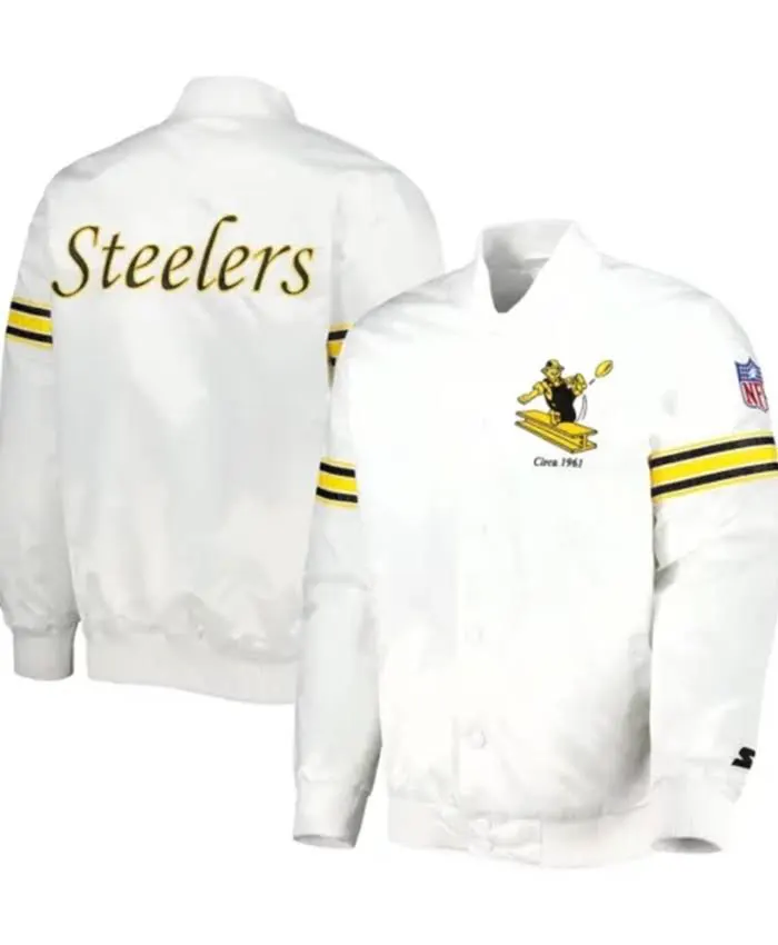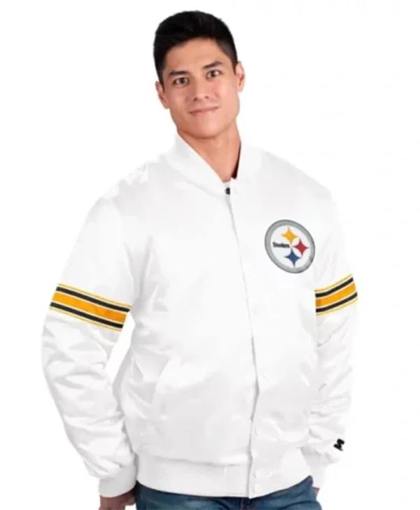 Pittsburgh Steelers White Satin Varsity Jacket For Sale