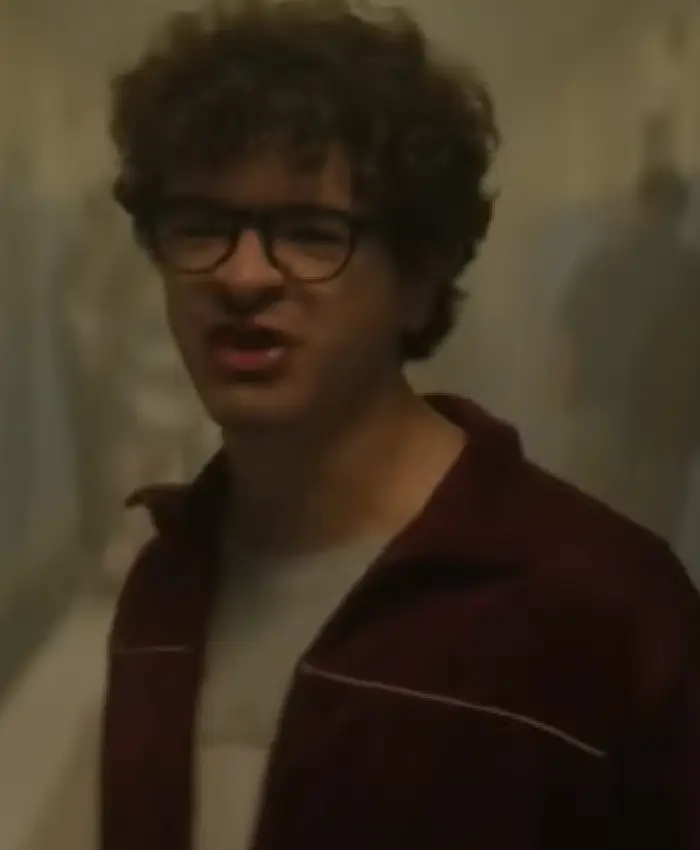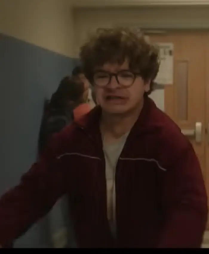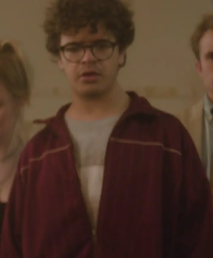 Gaten Matarazzo Pizza Movie 2026 Maroon Track Jacket On Sale For Men and Women