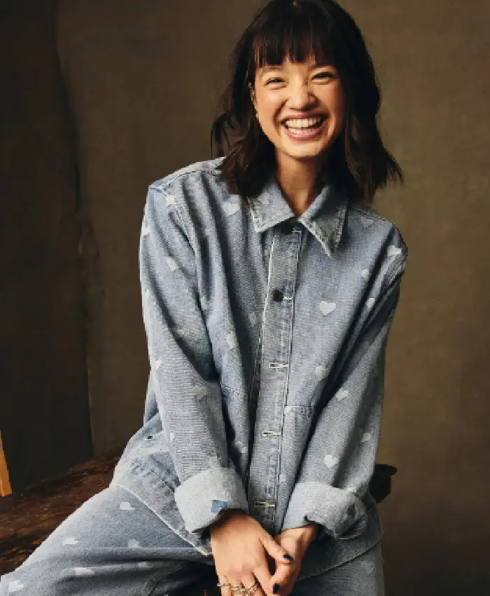 Peyton Elizabeth Lee 2026 Pizza Movie Ashley Blue Denim Jacket On Sale For Women