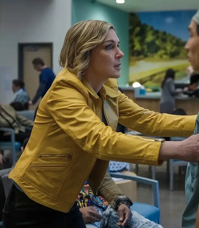 Rhea Seehorn TV-Series Pluribus 2025 Yellow Leather Jacket