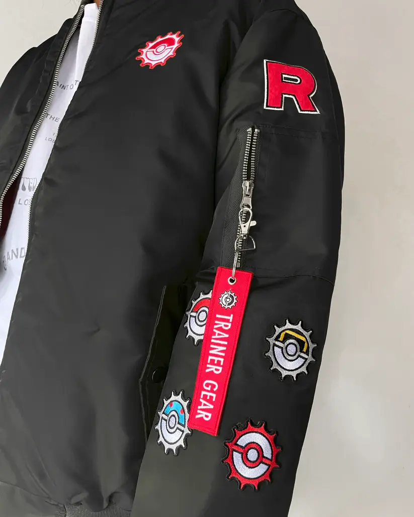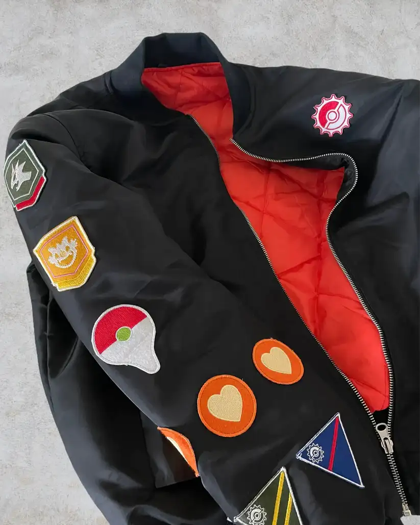 Pokemon Go Level 50 Black Satin Bomber Jacket On Sale