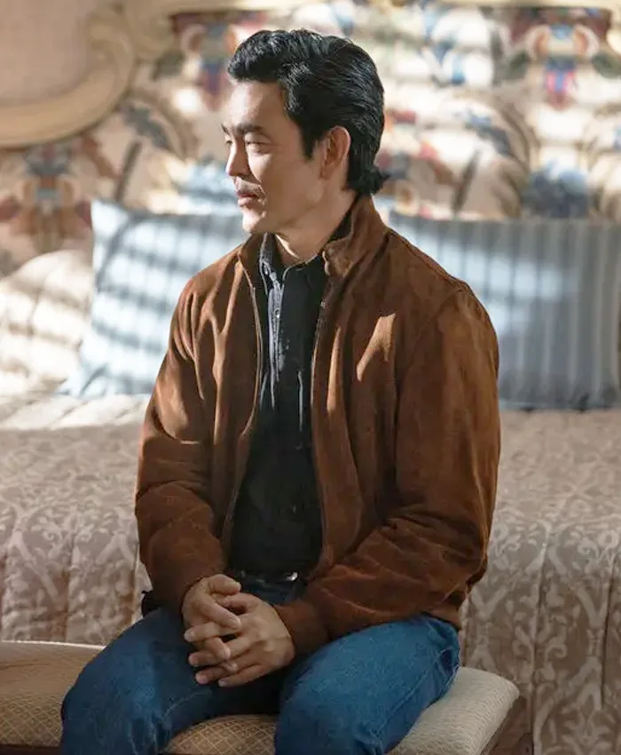 John Cho TV-Series Poker Face 2025 Guy Brown Suede Leather Jacket