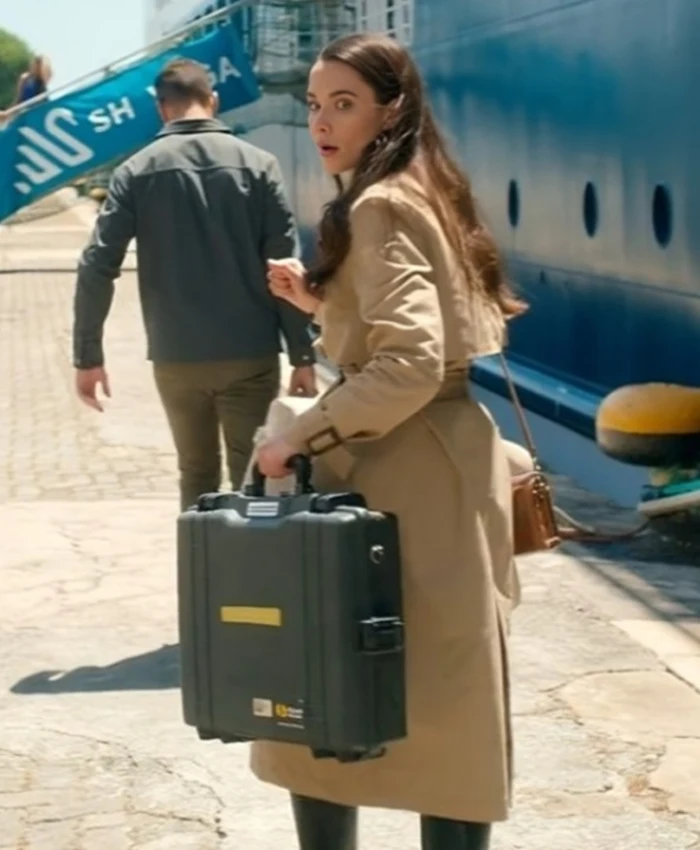 Rhiannon Fish Movie Polar Opposites 2025 Emma Beige Long Coat