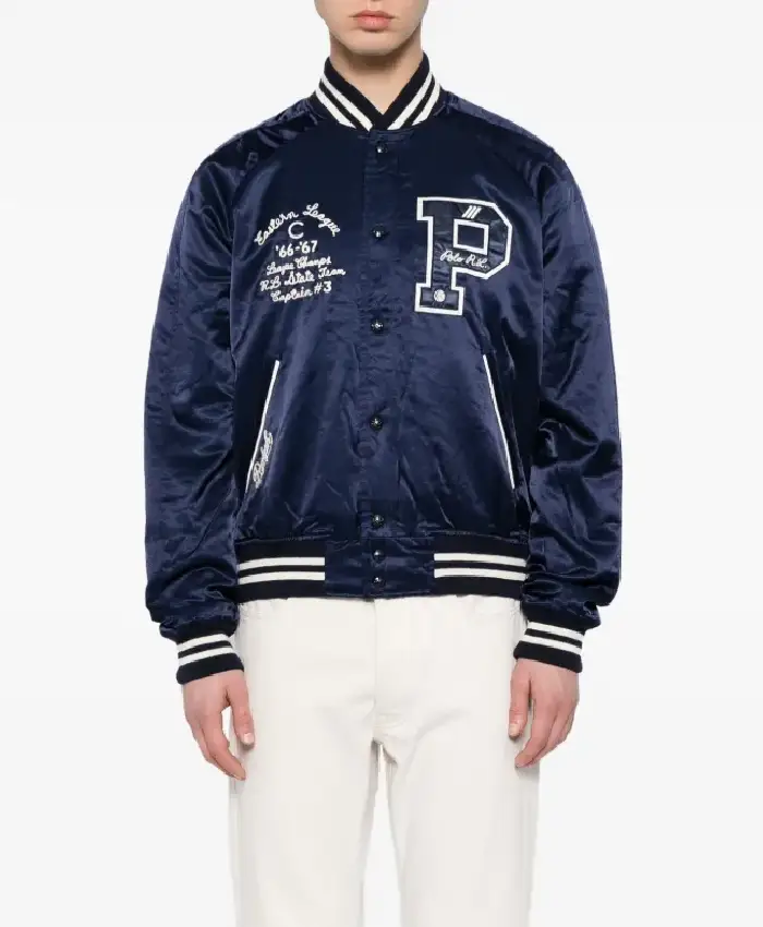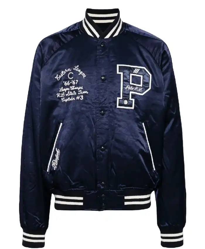 Polo Ralph lauren Logo Applique Blue Satin Bomber Jacket For Men and Women