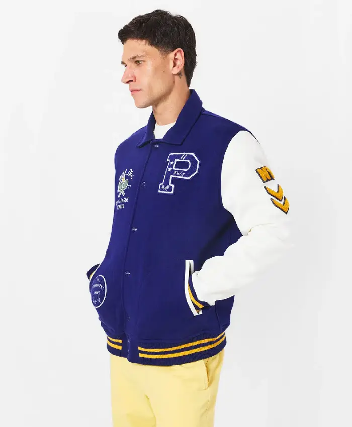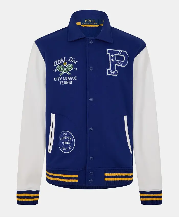 Polo Ralph Lauren Contrast Blue and White Letterman Varsity Jacket For Men